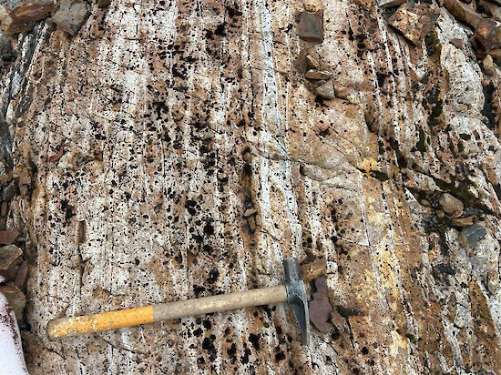 A second crew has been mobilized to the Rye Property where channel sampling and drill site selection are underway. The Company has identified a structural corridor through the reduced, Mayo Suite Itsi intrusion and surrounding hornfels, which demonstrates a very high density of sheeted quartz-tourmaline±arsenopyrite veining, which are pictured below. Trifecta has received terms for its updated class 1 notification for work at Rye which now includes diamond drilling. The Company intends to mobilize a drill to the Rye property in August.